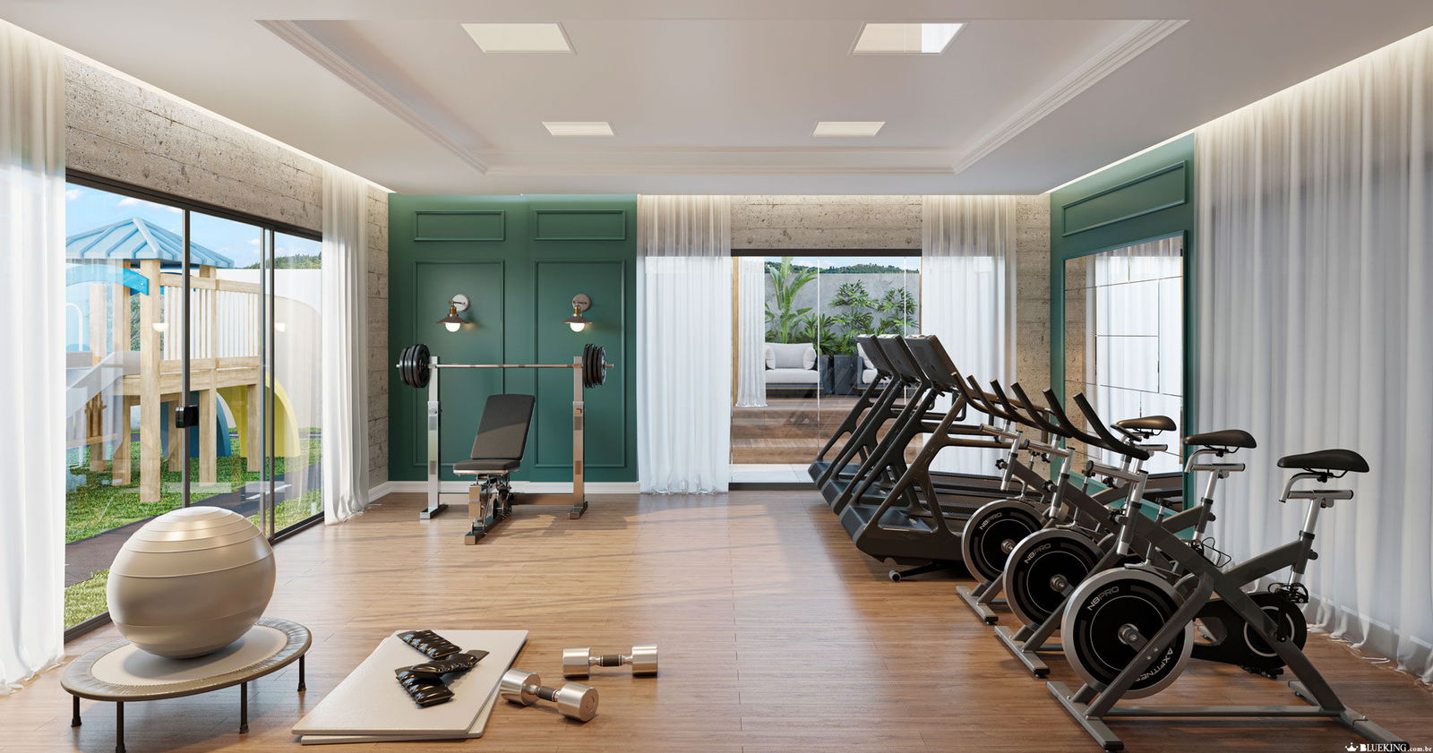 Os detalhes de acabamento refletem a atenção minuciosa com a qualidade e o bom gosto. Cada apartamento possui churrasqueira, perfeita para momentos de lazer e descontração em família, além de espera para ar-condicionado split, garantindo conforto térmico em todas as estações do ano. A infraestrutura para água quente, o porcelanato de alta qualidade, e o living integrado à sacada reforçam o conceito de um lar moderno e sofisticado, que prioriza o bem-estar e a funcionalidade dos ambientes.