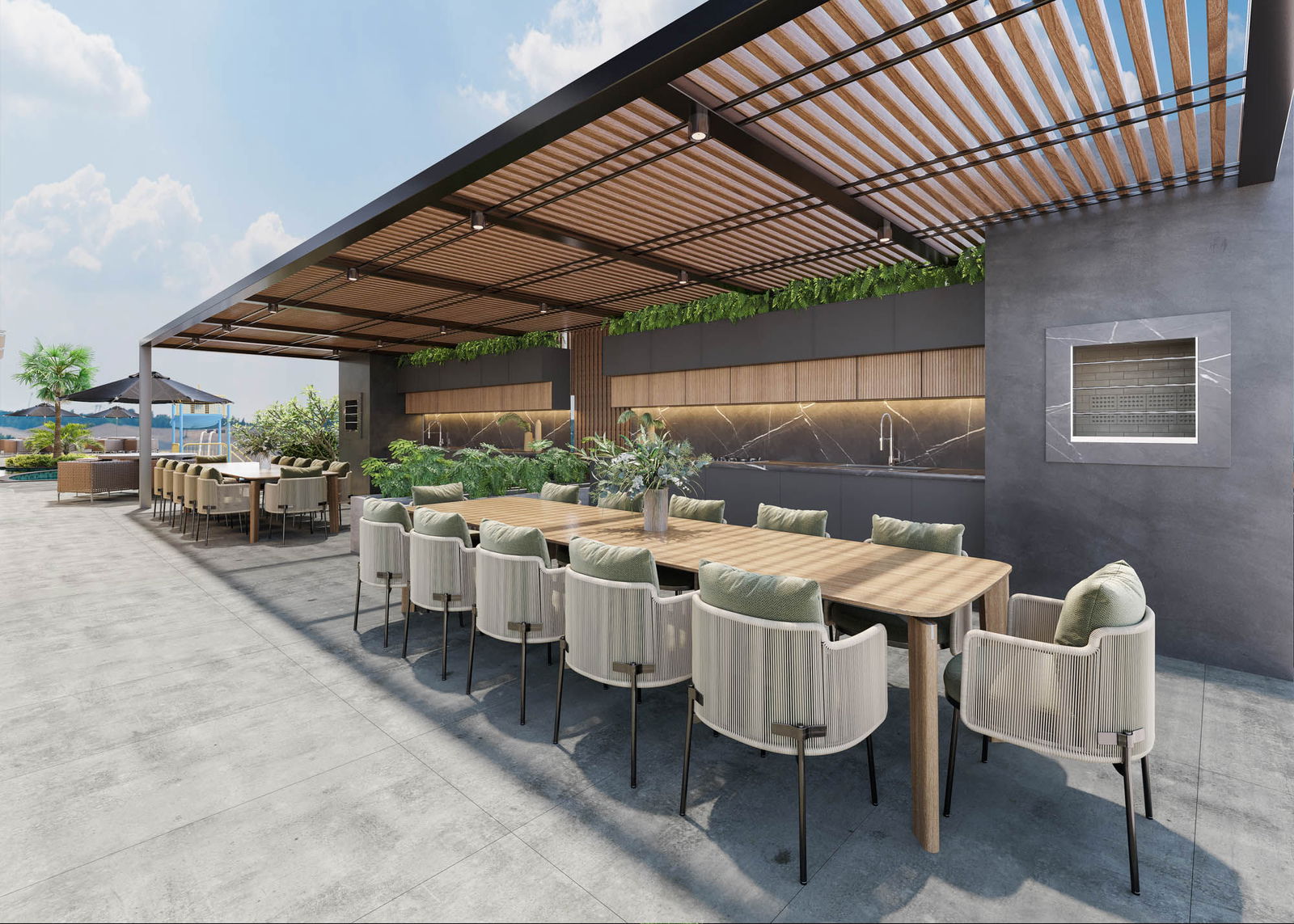 A área social do imóvel é um dos seus grandes destaques. A sala de estar é ampla e se integra de forma harmoniosa à cozinha e à varanda, criando um ambiente perfeito para momentos de convivência em família ou para receber amigos. A varanda espaçosa é ideal para relaxar e apreciar a vista, além de proporcionar mais luminosidade ao apartamento.
