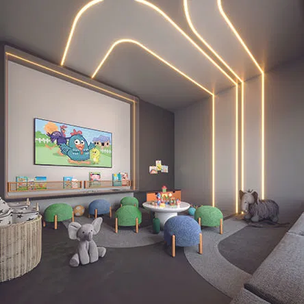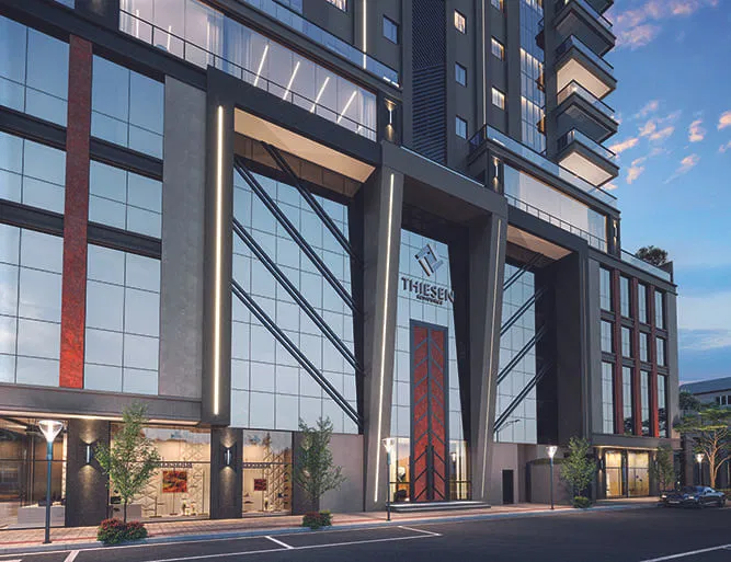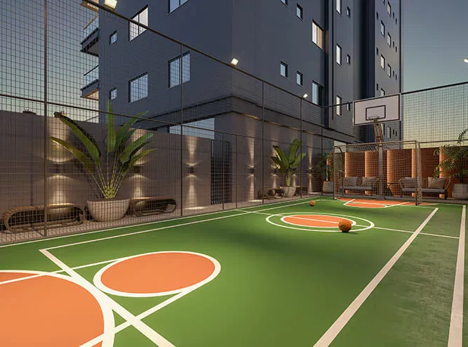 O empreendimento impressiona pela sua infraestrutura completa e diferenciada. Com fachada pastilhada e um imponente hall de entrada decorado, o Thiesen Residence conta com uma área de lazer de 850 m², incluindo ambientes mobiliados e decorados. Destacam-se os amplos espaços de convivência como o salão de festas, o espaço gourmet, a sala de jogos e a quadra poliesportiva, além das áreas de relaxamento e bem-estar, como a sala de massagem, o spa e as piscinas adulto e infantil. Para as famílias, há também uma brinquedoteca e um playground.