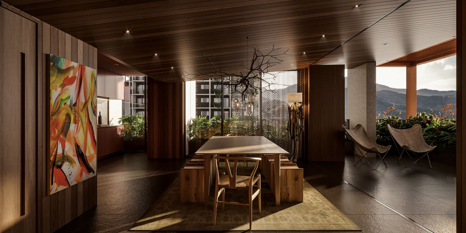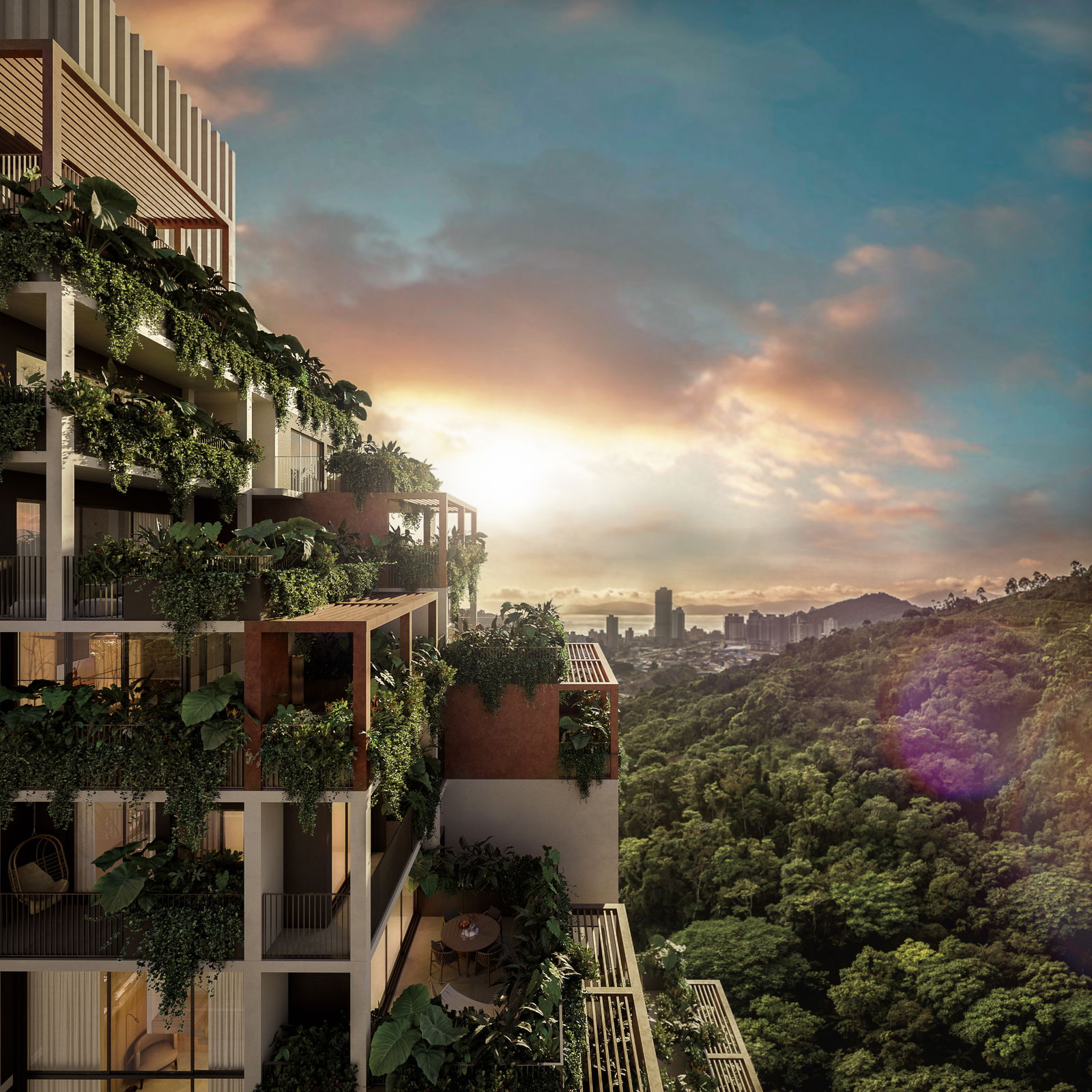 Além disso, a integração com a natureza vai além das vistas e dos materiais. O design dos apartamentos inclui soluções inovadoras de ventilação natural e controle climático, assegurando que o ambiente interno seja sempre confortável e saudável.