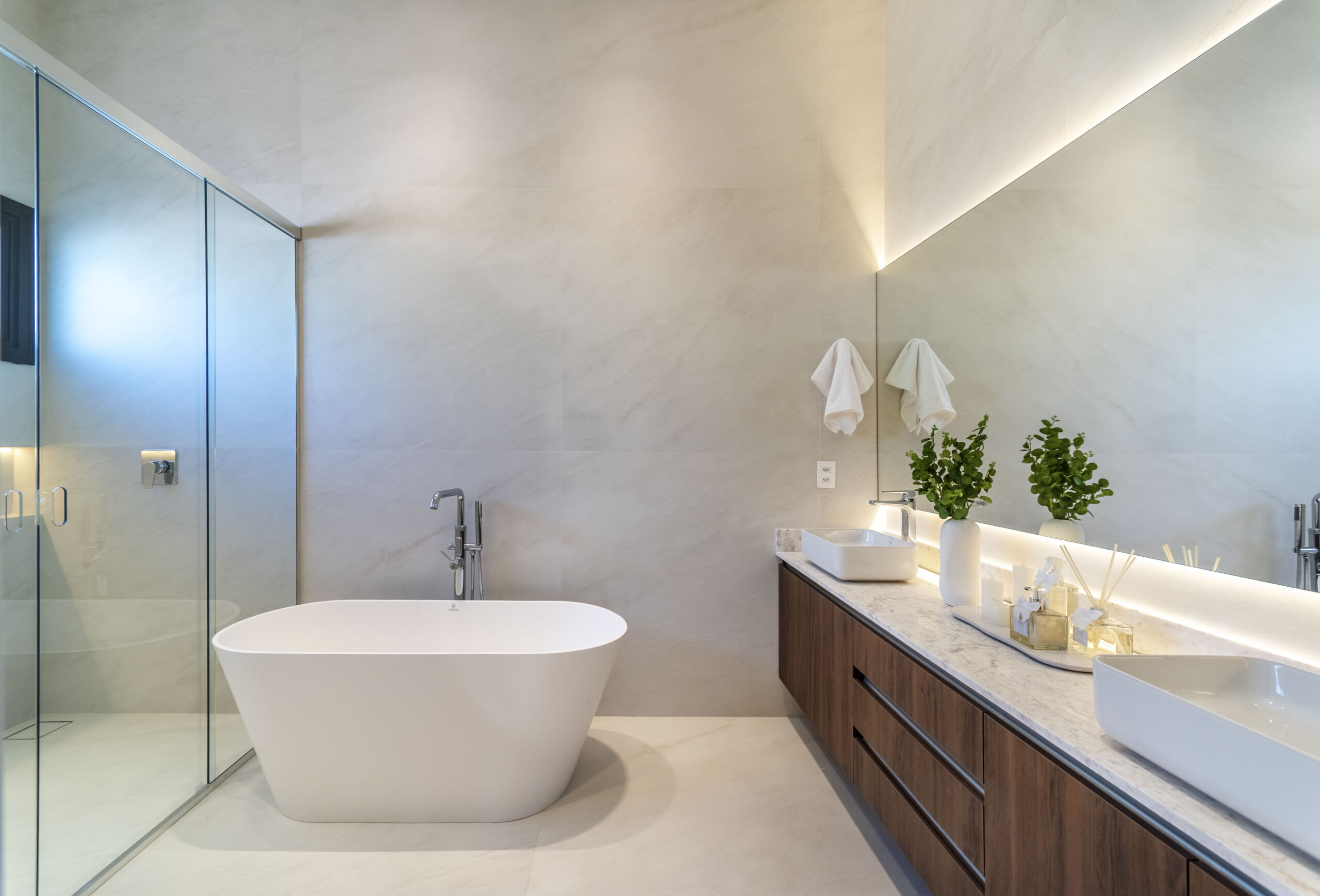 Na área íntima, as suítes oferecem conforto absoluto, com espaços bem distribuídos, acabamentos de alto padrão e uma atmosfera acolhedora que proporciona tranquilidade e descanso. Cada detalhe foi cuidadosamente planejado para unir sofisticação e praticidade no dia a dia.