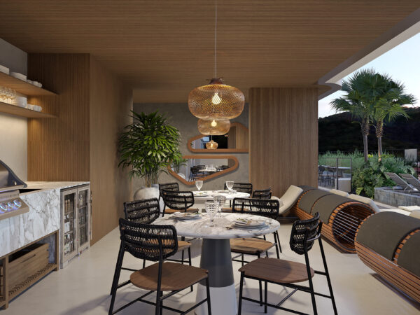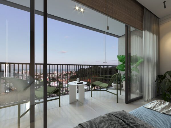 O apartamento possui uma suíte e um dormitório, ideal para casais, pequenas famílias ou até mesmo como segunda residência. A integração entre os ambientes proporciona uma atmosfera acolhedora, com boa iluminação natural e ventilação. Cada detalhe foi planejado para oferecer conforto sem abrir mão da elegância.