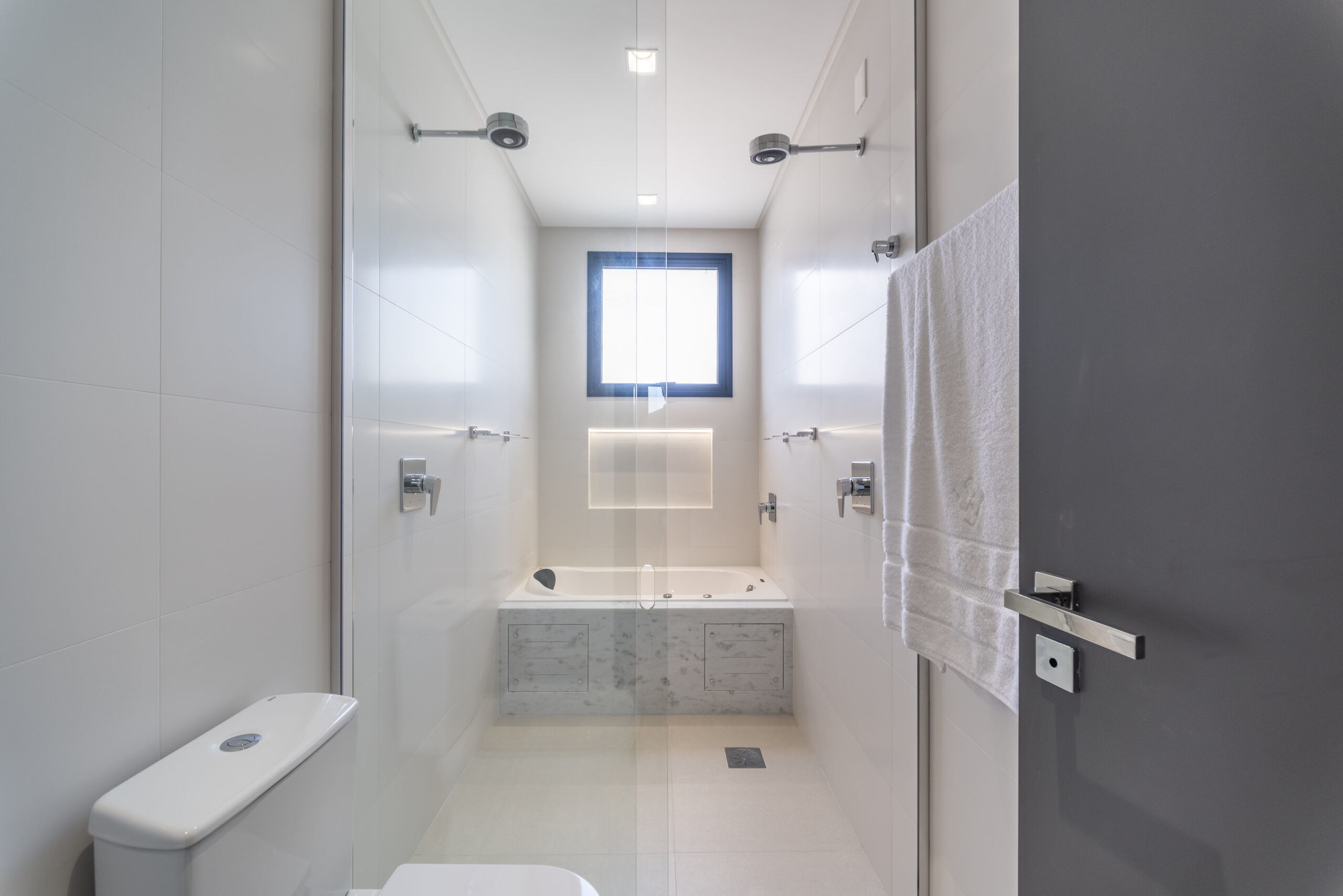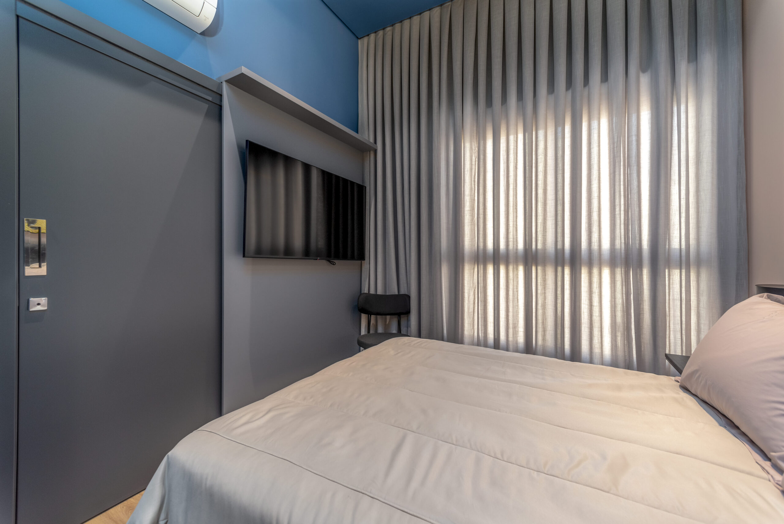 A infraestrutura interna também se destaca, oferecendo espera para ar-condicionado tipo split, gás e hidrômetro individuais, sistema de água quente e fechadura com senha, proporcionando mais conforto, segurança e praticidade no cotidiano.
