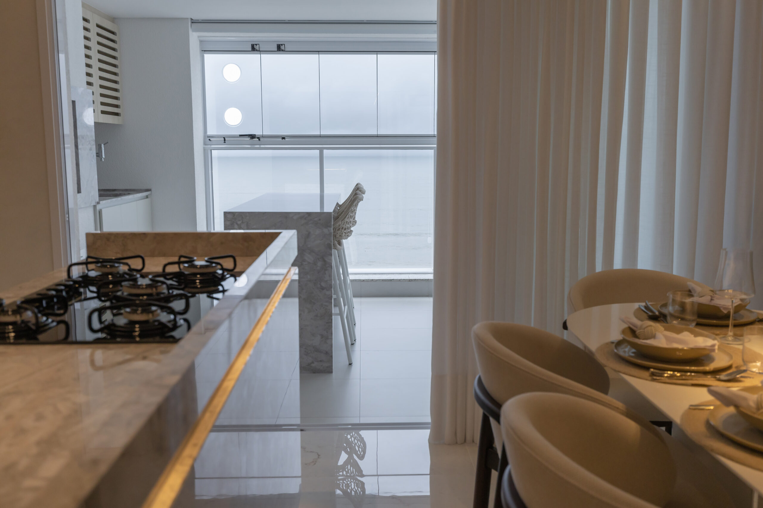 A área social é um convite para aproveitar a vida com mais leveza. A integração dos espaços, somada à sacada com churrasqueira, cria o cenário perfeito para reunir amigos e família. O apartamento conta ainda com lavabo, área de serviço funcional, além de infraestrutura completa, como espera para ar-condicionado tipo split, aquecimento a gás, gás e hidrômetro individuais, garantindo mais conforto, economia e autonomia no dia a dia.