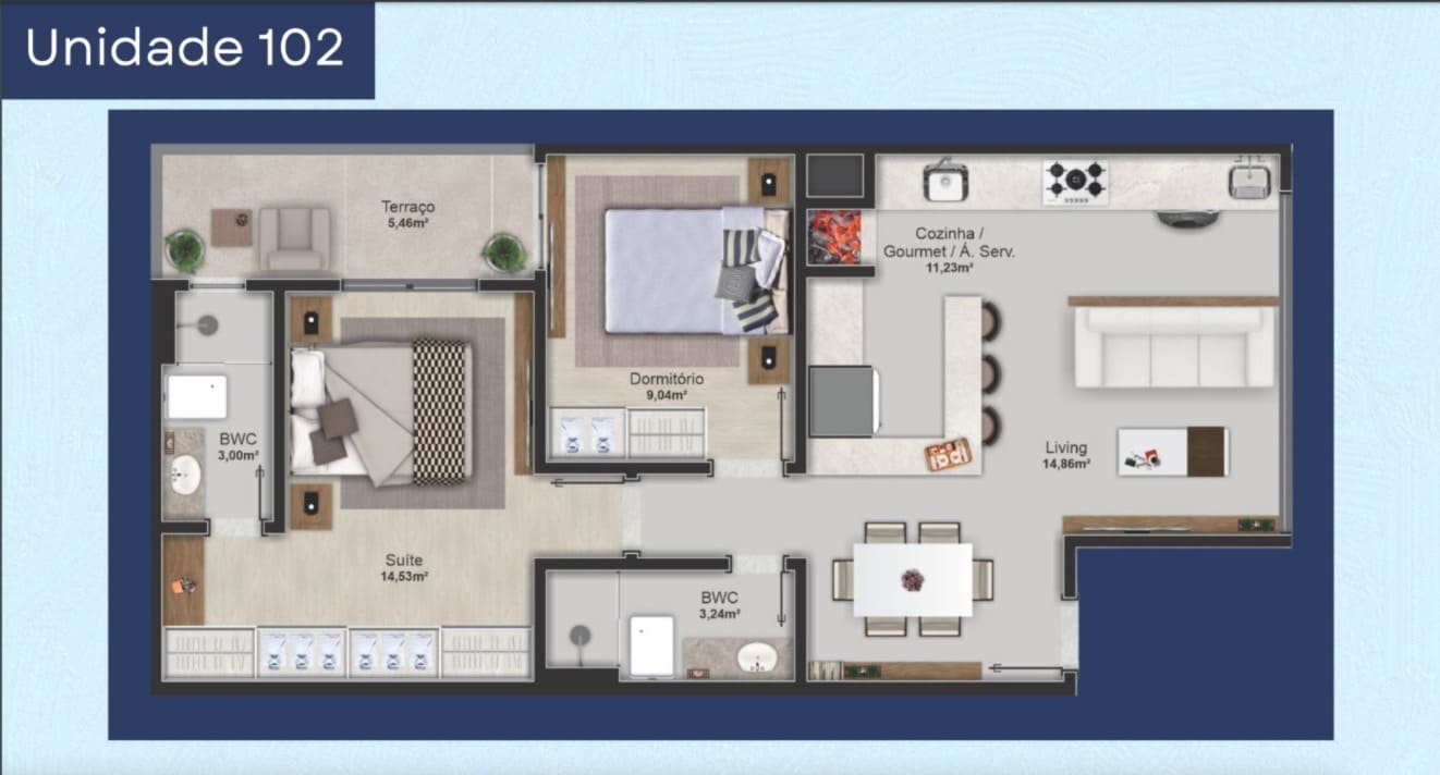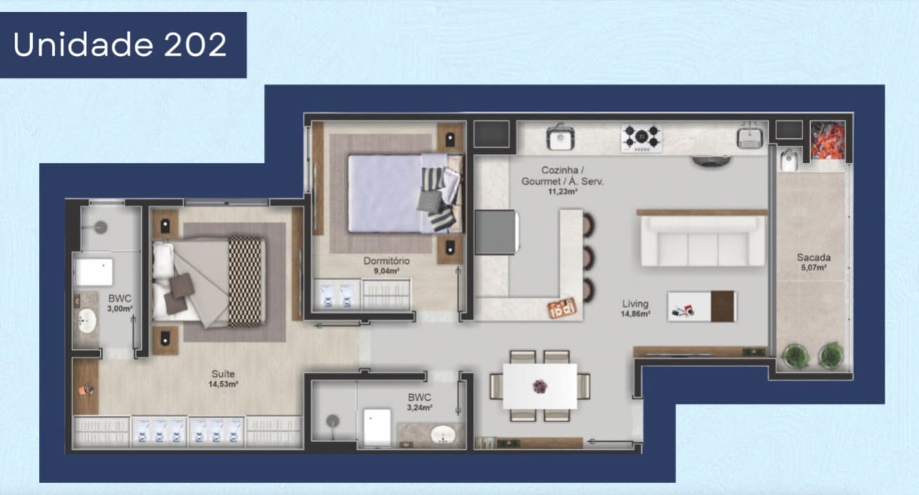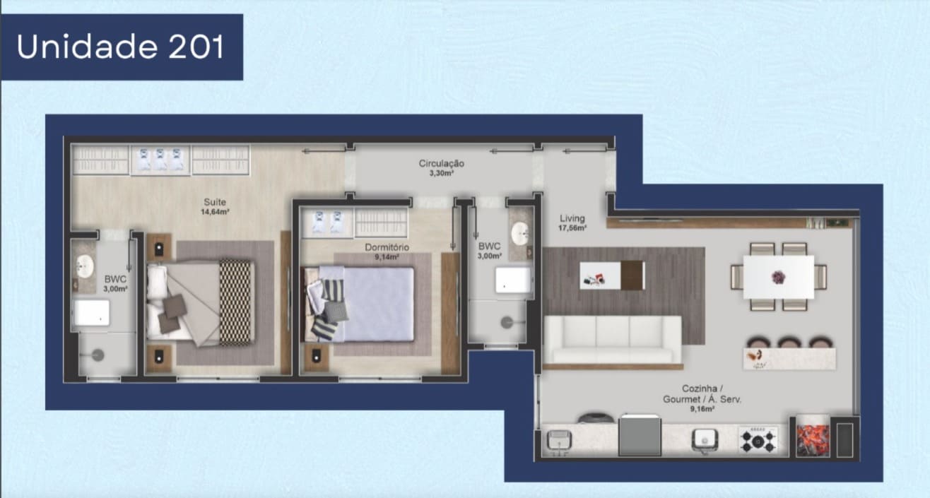 61m² Área Útil