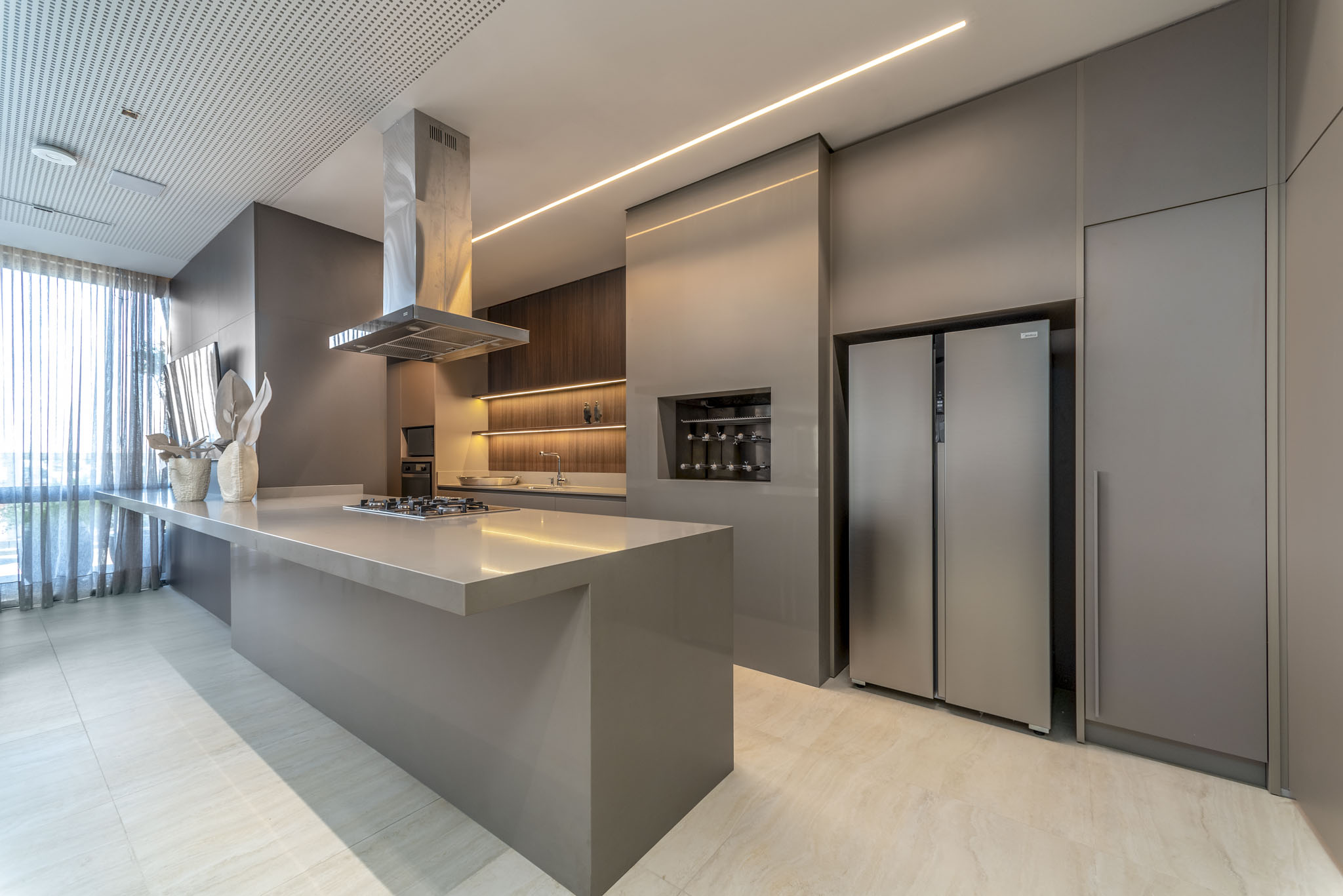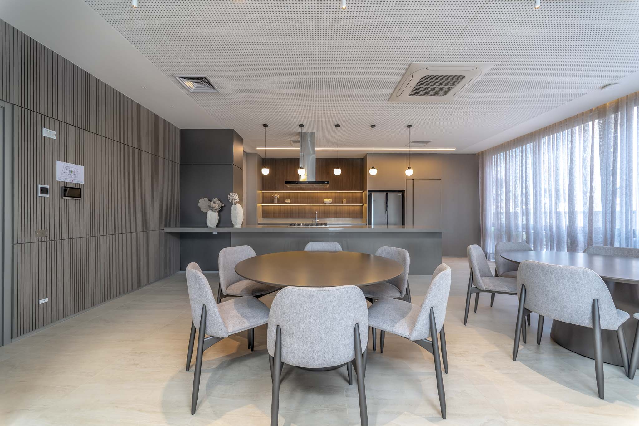 O projeto interno valoriza a funcionalidade e o design contemporâneo: as salas de estar e jantar integradas criam uma atmosfera acolhedora e convidativa, perfeita para momentos em família ou recepções. A cozinha e área de serviço foram desenhadas para otimizar o fluxo diário, enquanto o lavabo adiciona praticidade aos encontros sociais. Entre os diferenciais, destacam-se a fechadura eletrônica com senha na entrada, que alia tecnologia e segurança, e o interfone, reforçando o conforto residencial. Acabamentos de alto padrão garantem ambientes claros, ventilados e refinados, traduzindo elegância em cada detalhe.