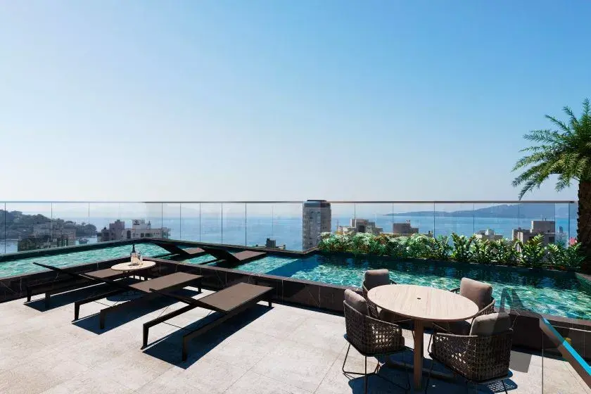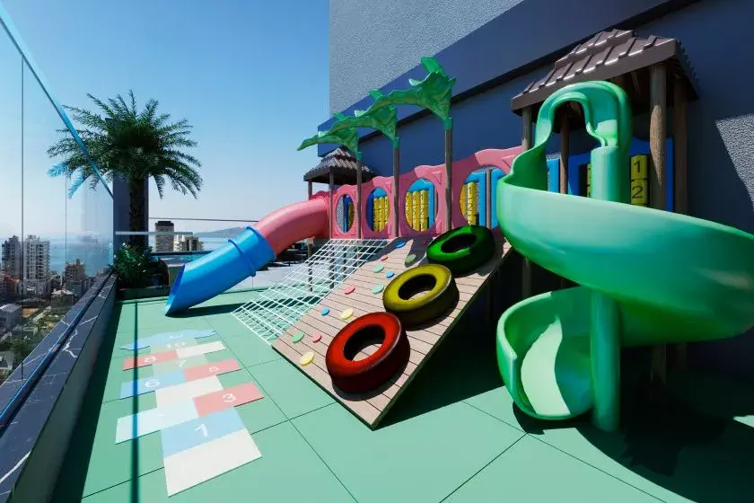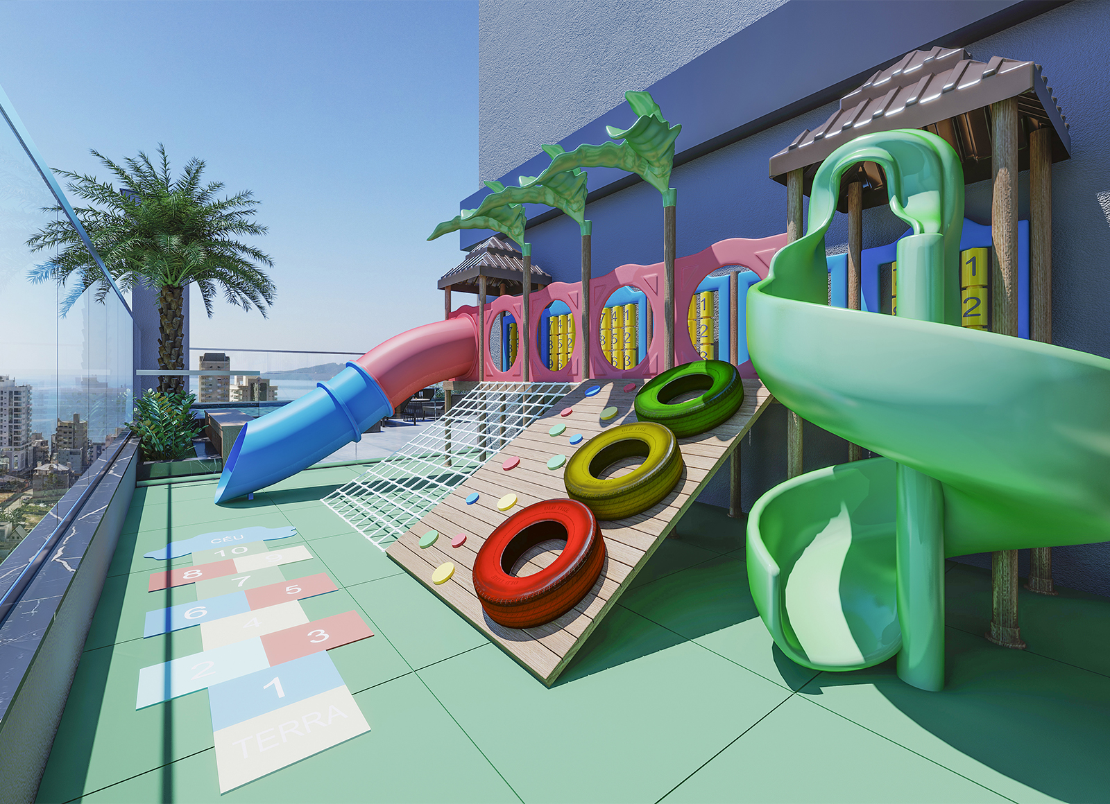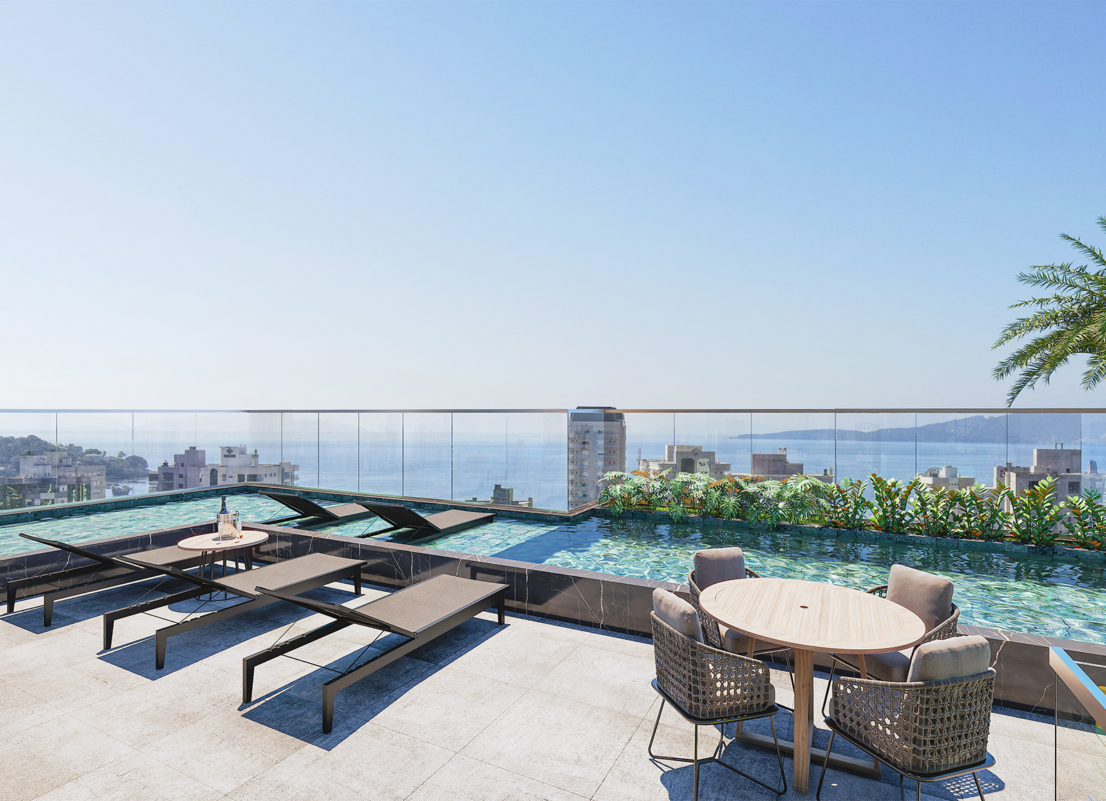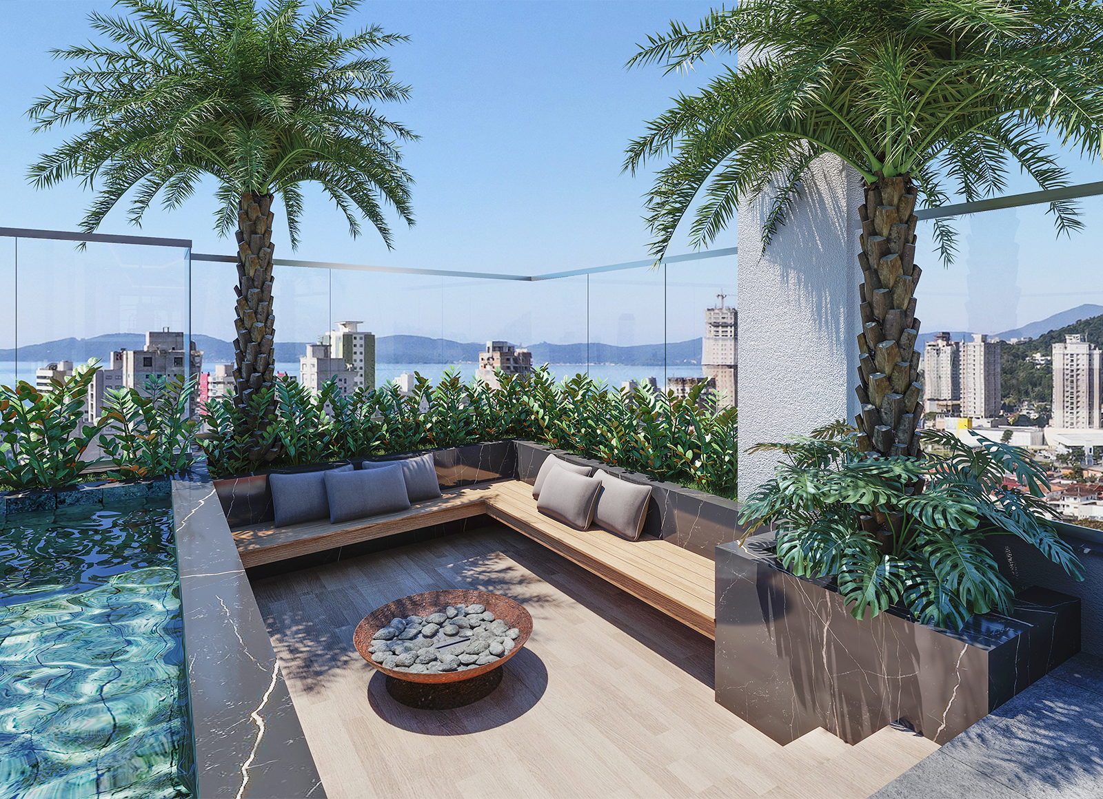 A varanda gourmet foi projetada para ser um ambiente multifuncional, onde o lazer e a gastronomia se encontram. A brisa suave e a vista proporcionam o cenário ideal para refeições ao ar livre, ou simplesmente para relaxar com uma bebida em mãos. O espaço é perfeito tanto para encontros íntimos quanto para momentos de descontração com os amigos, tornando cada ocasião única e especial.