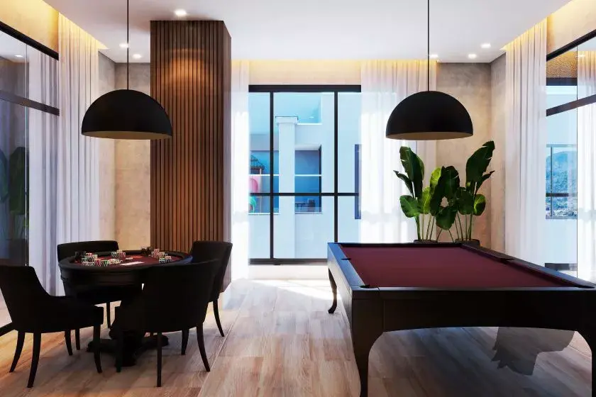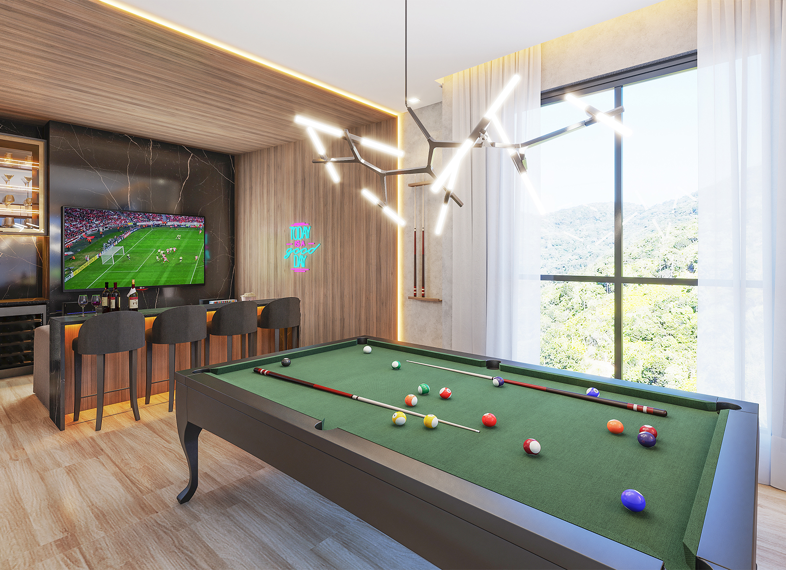 A área social se destaca pela amplitude e integração dos espaços, com um living que se conecta perfeitamente à varanda gourmet. Este é o coração do apartamento, um espaço pensado para receber amigos e familiares com todo o conforto e estilo. A churrasqueira a carvão adiciona um toque especial, ideal para quem aprecia o prazer de cozinhar ao ar livre e desfrutar de bons momentos em um ambiente descontraído, sem abrir mão do conforto de estar em casa.